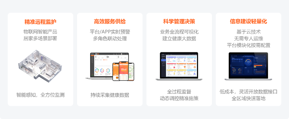 提供自研的适老化智能硬件、智慧康养运营管理平台、系统维护与升级等个性化服务,专家团队全程跟进,紧抓细节。