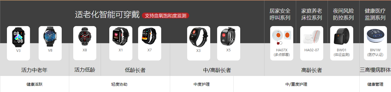 结合爱牵挂全龄段适老化、全时空多场景设计的智能产品,实时感知,实时预警,及时排除长者的健康及安全隐患,帮助服务机构实现长者全方位的远程照护。